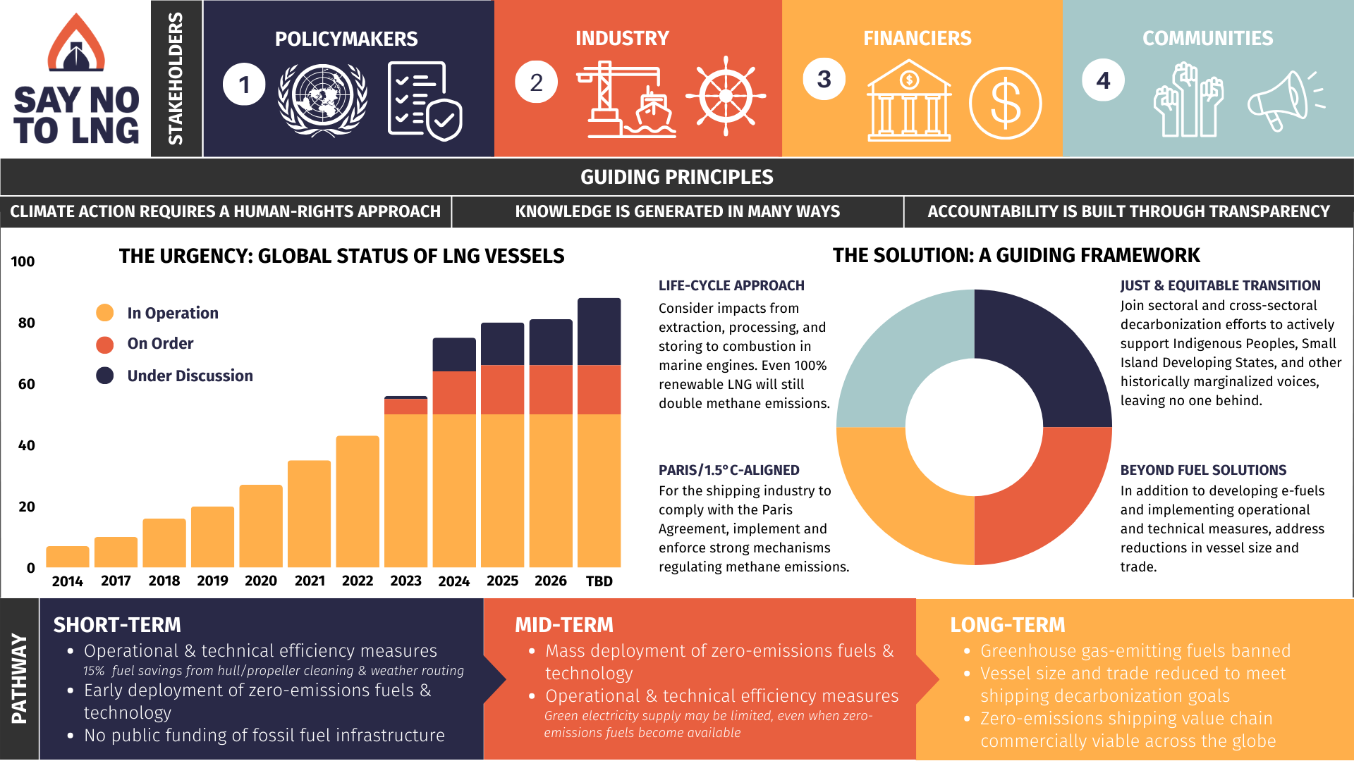 La campagne "Say No to LNG" (Dites non au GNL) définit les objectifs d'une "industrie maritime à zéro émission, juste et équitable".